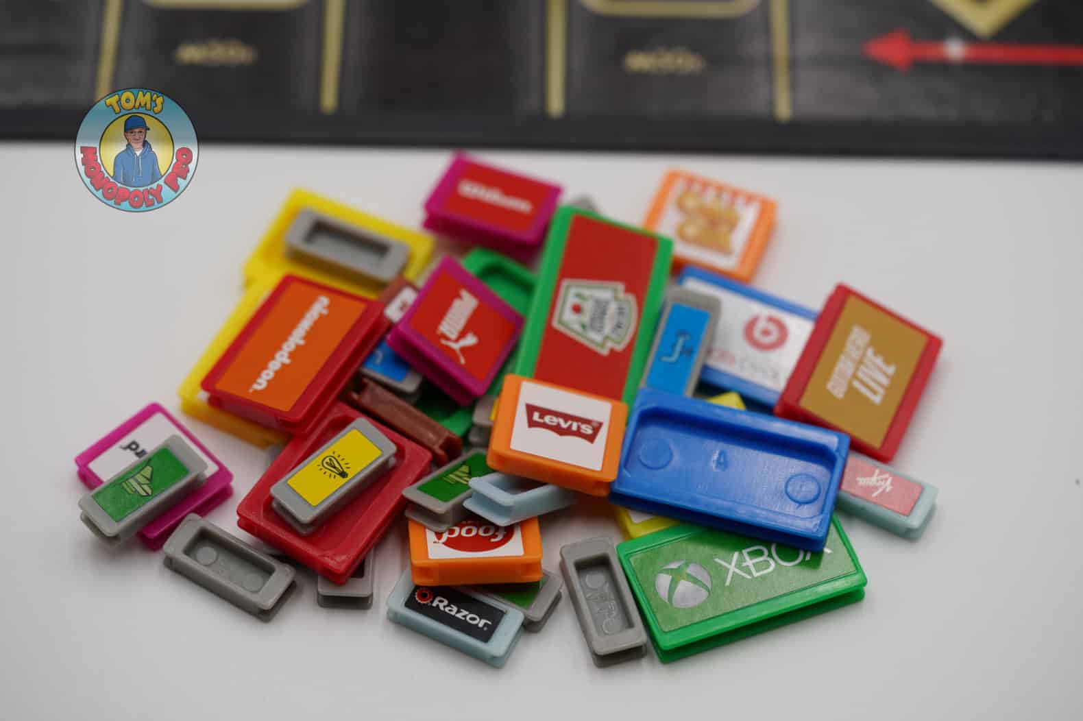 When you land on a brand space you have the option to buy that brand and then slide the corresponding brand tile into your tower. You now own that brand!